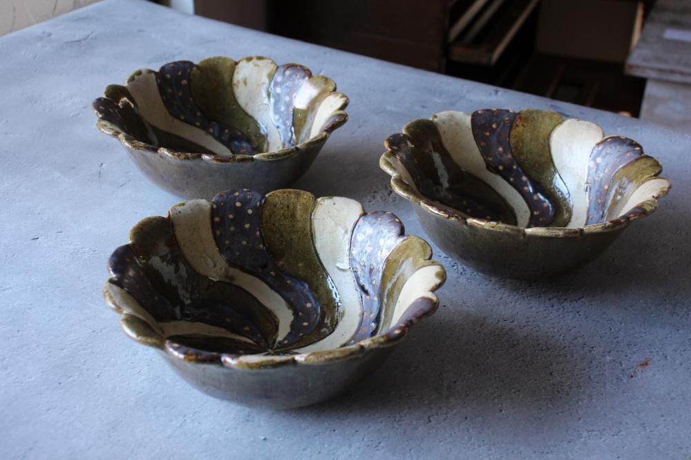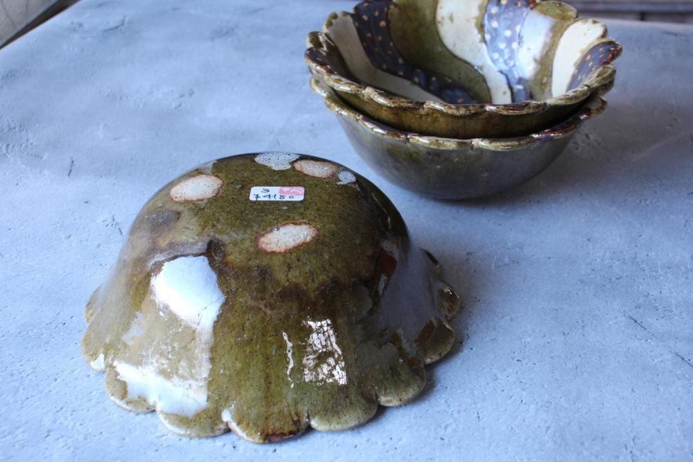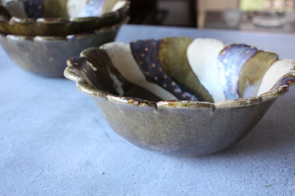 ※アイテムや個体によっては焼成の際のゆがみにより高台のかたつきなど多少でております。またピンホール(スポット)と呼ばれる釉薬に出来る小さな穴のような箇所や、貫入と呼ばれるヒビ、カケのように見える凹み、縁のキレ、石が外れた石ハゼと呼ばれる景色、鉄点など焼き物独特の現象も見られます。ご了承下さい。また使用には問題ございませんのでご安心ください。