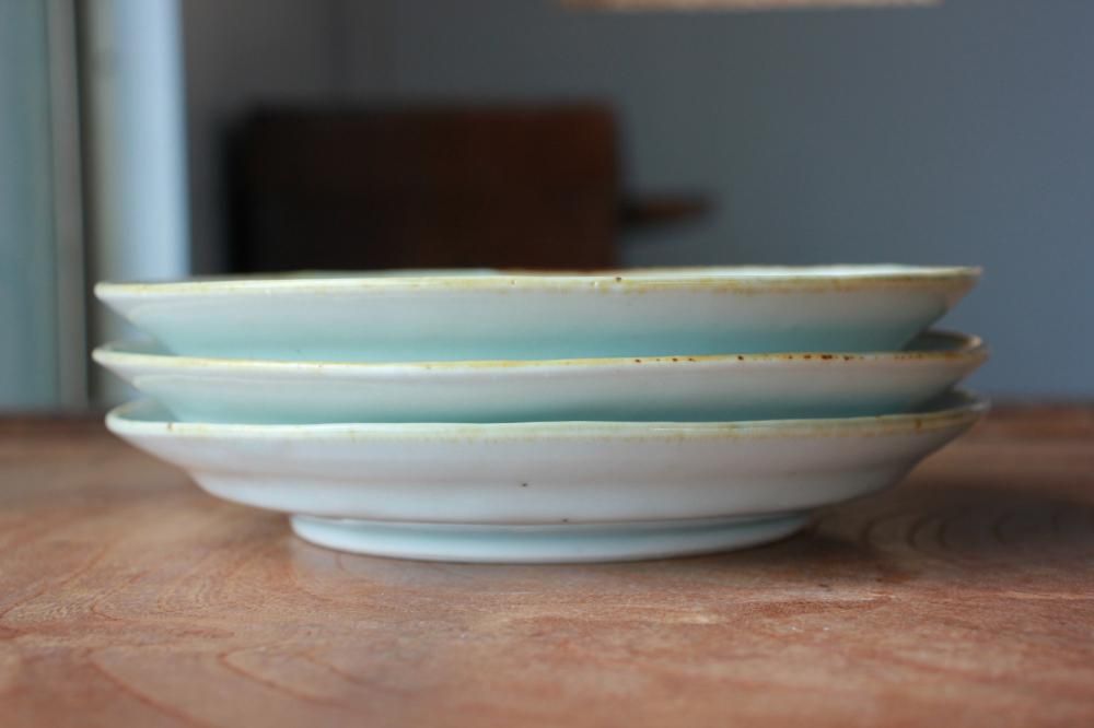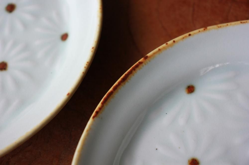 ※アイテムや個体によっては焼成の際のゆがみにより高台のかたつきなど多少でております。またピンホール(スポット)と呼ばれる釉薬に出来る小さな穴のような箇所や、貫入と呼ばれるヒビ、カケのように見える凹み、縁のキレ、石が外れた石ハゼと呼ばれる景色、鉄点など焼き物独特の現象も見られます。ご了承下さい。また使用には問題ございませんのでご安心ください。