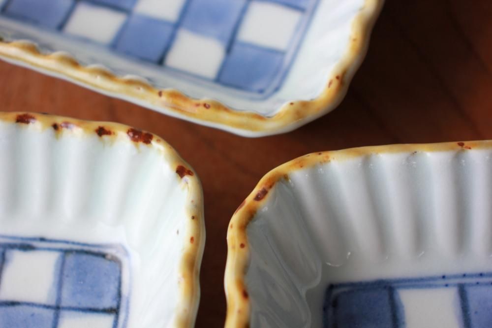 ※アイテムや個体によっては焼成の際のゆがみにより高台のかたつきなど多少でております。またピンホール(スポット)と呼ばれる釉薬に出来る小さな穴のような箇所や、貫入と呼ばれるヒビ、カケのように見える凹み、縁のキレ、石が外れた石ハゼと呼ばれる景色、鉄点など焼き物独特の現象も見られます。ご了承下さい。また使用には問題ございませんのでご安心ください。