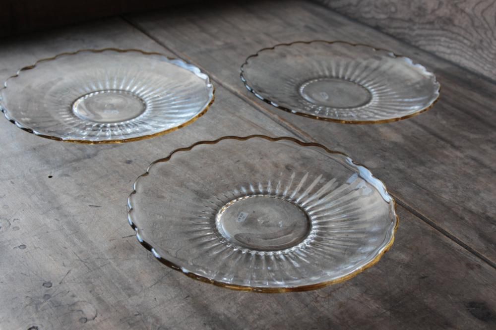 輪花に形どられた縁にあめ色のアクセント。